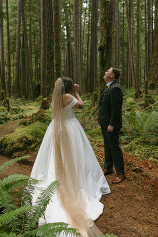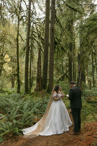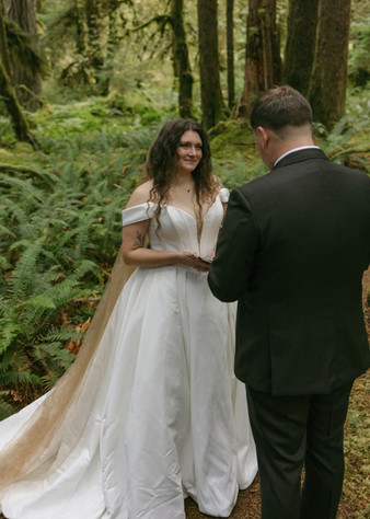 There’s something almost otherworldly about the Hoh Rainforest — its towering evergreens, moss-draped branches, and soft, fern-covered forest floor create the feeling of stepping straight into a fairytale. This elopement among the Ancient Groves captured all of that magic and more. Hidden beneath the canopy of old-growth trees, these two shared an emotional private vow and ring exchange that felt deeply personal, and intentional.